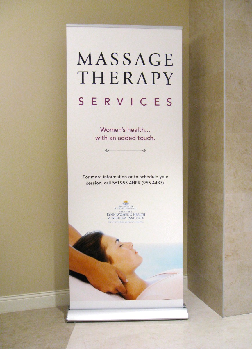 Art directed and designed bannerstand for hospital massage therapy services.